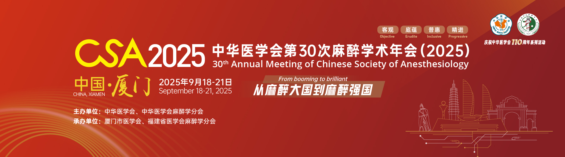 We are delighted to invite you to the 30th Annual Meeting of Chinese Society of Anesthesiology (CSA2025), which will be held in Xiamen from September 18 to 21, 2025.